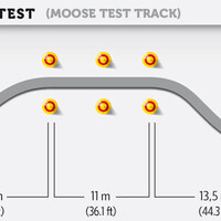 Rychlost při losím testu se postupně zvyšuje až do doby, kdy se auto přetočí nebo manévr nezvládne. Víte proč Mercedes-Benz začal používat systém ESP, kromě svých nejvyšších modelů, ve všech ostatních? Proč se říkalo, že Mercedes tř. A je nebezpečná krabice, která je méně stabilní než Trabant? Chvíle napětí…Ano, správně, bylo to kvůli moose testu. V roce 1997 totiž novinář Robert Colin převrátil ‘Áčko‘ na střechu.