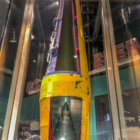 Na sever od místa, kde jste si mohli koupit trávu pak můžete narazit na malé zastrčené muzeum atomových testů. To, co je nahoře to je prosím atomová bomba. Jde o jednodušší konstrukci, ne o implozní bombu. Muzeum je maličké, ale jde z něj chlad nejen díky silné klimatizaci. Všem atomovým mykologům doporučuji! Jó kde jsou ty doby, kdy největší atrakcí výletu do Vegas byla možnost vidět ze Stripu atomovou bedlu. Co na tom, že vám pak po těle začaly velmi rychle růst zcela nové kulaté orgány…