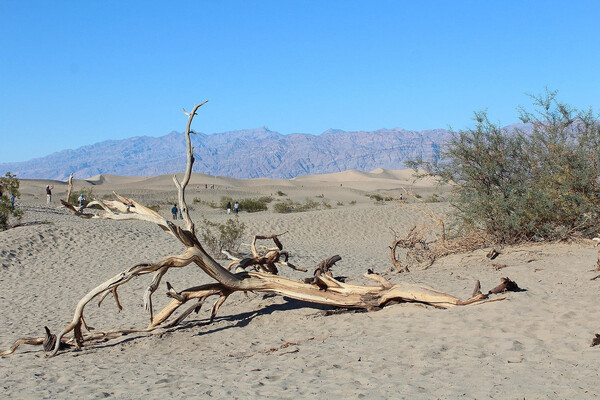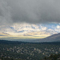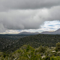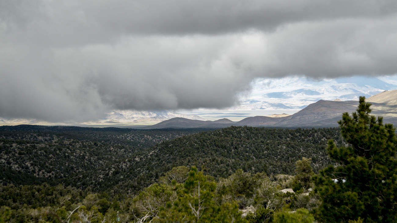 Na mount Charleston vede cesta. Samozřejmě, jak byste se tam jinak jako chtěli dostat, že… Nabízí krásný výhled do vyprahlé pouště a já měl to štěstí, že jsem z něj pozoroval bouřku. Pozoroval jsem bouřku z boku. Mimochodem tahle fotka je teleobjektivem, ty hory v pozadí budou tak 50 kilometrů daleko. Zdejší rozměry jsou pro Evropana dost divoké. Absence stromů, suchý vzduch a široká údolí pak působí, jako byste se ocitli na desetkrát větší zeměkouli. Mě to ale táhlo do severní Kalifornie, do údolí smrti. Byla to totiž nejbližší ryze turistická atrakce, takže jsem sjel z hor a pokračoval pouští dál…