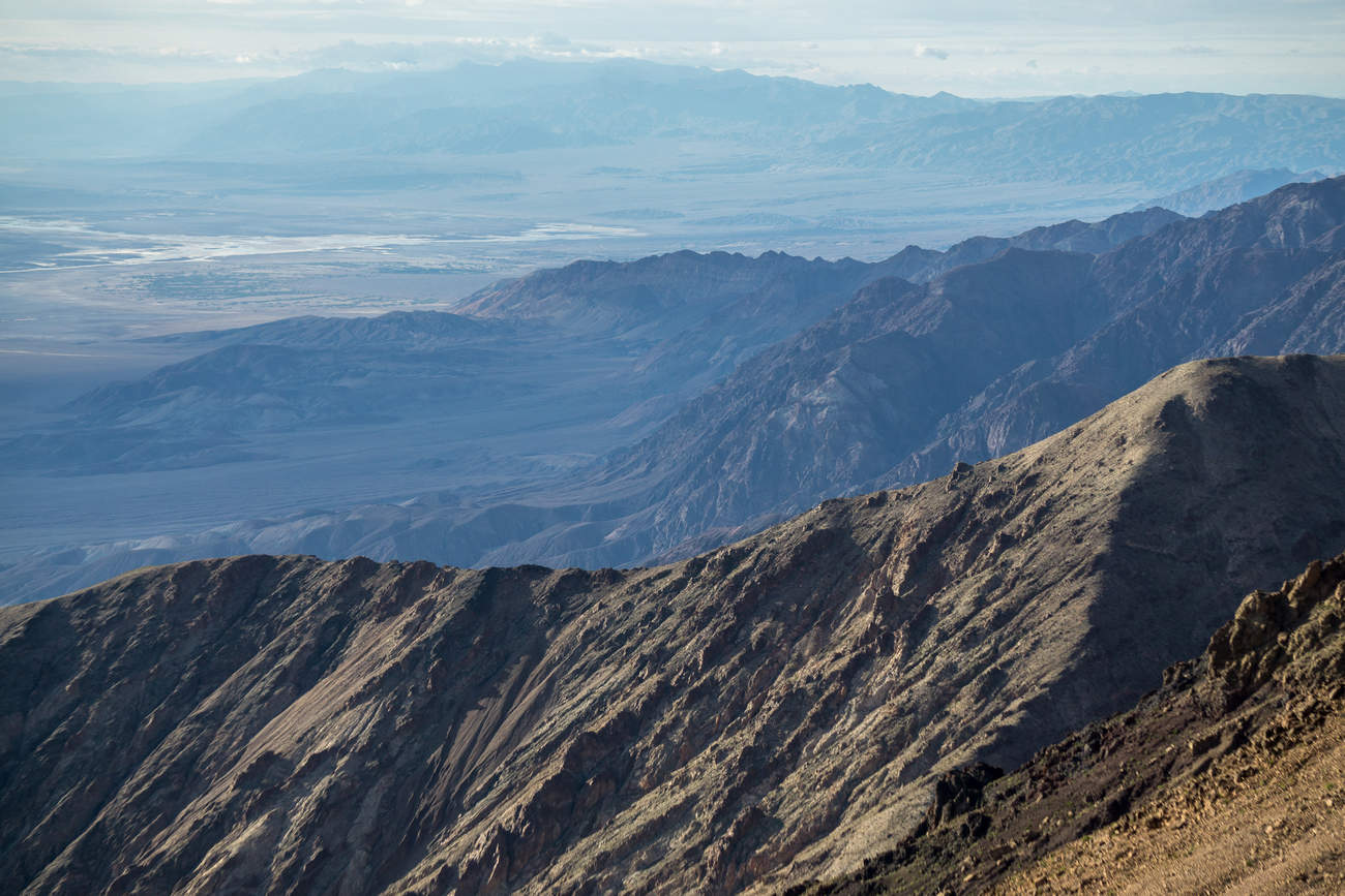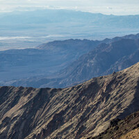 Od budky doporučuji nepokračovat rovně dál vstříc nížině, ale odbočit doleva na Dante’s View. Fotka nahoře je samozřejmě “přebuch” a barev je tam víc, než ve skutečnosti, ale podle mého vyjadřuje dobře šílenou a na kost odhalenou geologii tohoto místa.