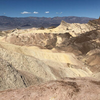 A pak dále, ještě než narazíte na absentující hladinu moře, jedete kolem Zabriskie Point. Je to jedno z nejbarevnějších míst a turistická atrakce par excellence, ale čemu se divit: Následující fotka není editovaná, takhle vylezla z iPhonu a ty barvy fakt nekecaj.