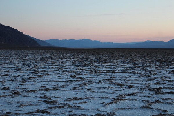 A jsme konečně tady. Hladina moře, které není. Odbočka před Furnace Creek směrem na Badwater. Baví mě ta jména. Jsou tak trefná. Připadáte si fakt jako v troubě a bajka o tom, jak bylo pojmenováno “jezero” je taky pábitelská. Dobyvatel s karavanou mul si prostě zapsal do zápisníčku to, co nastalo, když se jedna z mul napila. Bad Water. Špatná Voda. No si piš, todle není socialistický seriál o koních! ;-)