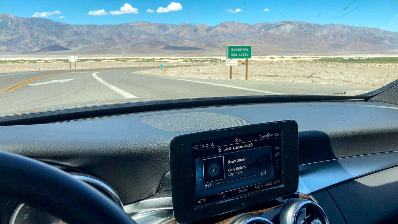 A pak zpět na Badwater Road a smutek. Na druhou stranu údolí se se svou břichoplazkou od Mercedesu nepodívám. Ne, že bych potřeboval čtyřkolku, ale cesty jsou tak rozbité, že by mi napřed vypadaly, plomby, pak součástky interieru a nakonec kola. A bez signálu to fakt riskovat nebudu. Tohle je důvod, proč vám doporučím si půjčit offroad.