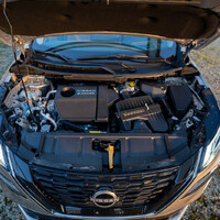 Popíšu rovnou tu nejsilnější, která je v testovaném voze. Vpředu pod kapotou stále trůní ten samý tříválec, ale zcela přišel o jakékoli spojení s koly. Nyní se z něj stává pouze generátor elektřiny, která je ukládaná do baterie o kapacitě pouze 1.73 kWh. O samotný pohyb se starají dva elektromotory, jeden na každé nápravě, a auto je tak čtyřkolka pod názvem e-4ORCE. Souhrnný výkon obou motorů činí 157 kW, točivý moment předního motoru je 330 Nm, zadního pak 195 Nm. U prostřední výkonové verze chybí zadní elektromotor. Auto je tak pouze předokolka s jedním elektromotorem o výkonu 150 kW a 330 Nm, zbytek hnacího ústrojí ale funguje stejně.
