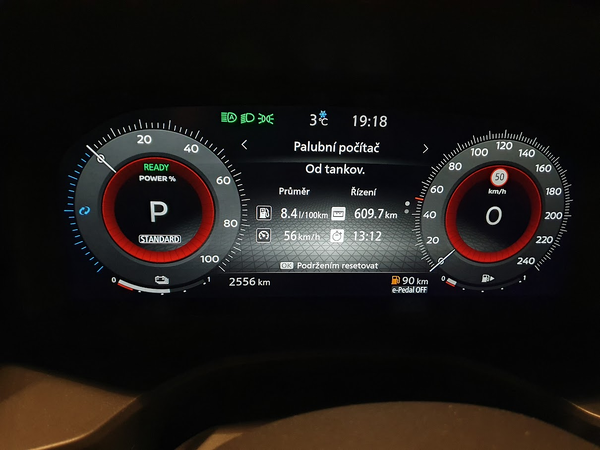 Řidič má v dispozici dva 12,3 palce velké displeje. Jeden pod volantem a druhý klasicky uprostřed kabiny. Oba spojuje to, že mají perfektní jemné zobrazení plné jasných barev a také okamžité reakce na povely. Přístrojový displej nabízí jak klasické zobrazení s dvěma kruhovými ukazateli, tak lehce upravené, které vidíte na fotkách. Na středovém displeji pak samozřejmě můžete promítnout Apple Carplay nebo Android Auto, ale jen pomocí kabelu. Nechybí bezdrátová nabíječka, 360stupňové kamery kolem vozu, head-up displej, elektricky kufr, bezklíčové ovládání nebo třeba „povinné“ točítko hlasitosti. Jistě také potěší i samostatný panel pro ovládání klimatizace.