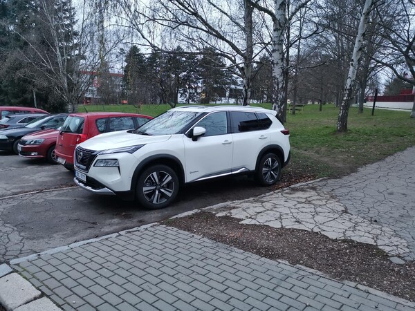 Vlastně velmi dobře, jen s jedním podstatným problémem, ke kterému se dostanu. Nejdříve k pozitivům. Auto se rozjíždí zcela neslyšně, plyn jde krásně dávkovat, plynulá jízda bez řazení je příjemná i pro posádku a celkově je pobyt na palubě nad očekávání příjemný. Řidič si může zvolit tlačítky na středovém panelu i EV mód, na který auto zvládne pár kilometrů (cca 3 km), nebo ovládání pouze akcelerátorem (e-Pedal). Když kapacita baterie klesá už pod polovinu, auto si začíná zapínat spalovací motor, který naskakuje skoro neslyšně a bez jakýchkoli vibrací. Je znát, že X-Trail je pro Nissan jedním z těch top vozů a tlumicích materiálů zde bylo použité nemalé množství. Naprostou většinu času auto pohání oba elektromotory najednou. Pouze přední elektromotor auto používá jen při jízdě v naprosto minimální zátěži, ale řidič to nemá možnost z ničeho poznat, jen podle grafiky na displeji. Žádné škubání nebo kontrolky. Při klidné jízdě je auto perfektní.