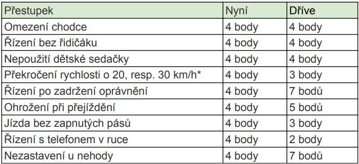 Další sporný bod vidím v řízení po zadržení řidičského oprávnění a nezastavení u nehody. V obou případech je bodová sazba snížena z původních 7 bodů na 4… Takže neposkytnout pomoc obětem bouračky je totéž co dvojí překročení rychlosti o 10 km v hodině? To mi nějak nesedí. A sednout do auta poté, co člověk přišel o řidičák? To už vyžaduje hodně kreativní výklad zodpovědnosti.