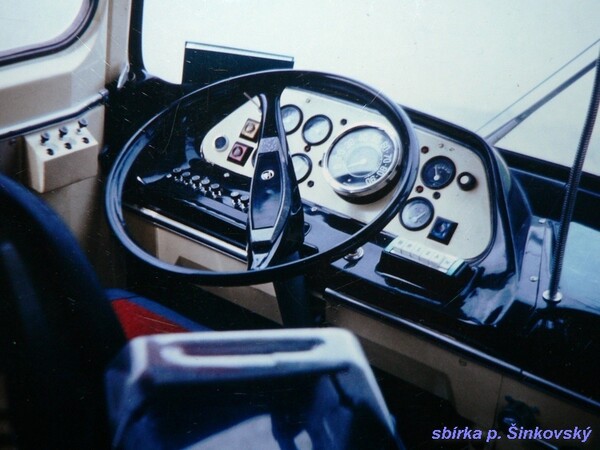 Dvoustupňová automatická převodovka Praga byla ovládaná jednoduchými hranatými tlačítky v řadě na palubce vpravo pod volantem - jednoduché, elegantní a přehledné.