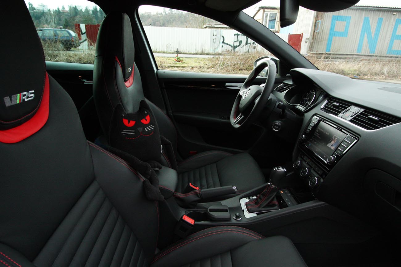 Oproti běžnému RS má verze 230 navíc 10 koní, o 0,1 vteřiny lepší zrychlení z nuly na sto a o 2 km/h vyšší maximálku. Prd v lese, řeknete si, a budete mít pravdu. Dvěstětřicítka není rychlejší než ‚obyčejné‘ RS. Nedalo mi to a narychlo jsem si domluvila testovací jízdu, abych měla srovnání, a s klidným svědomím říkám, že rozdíly v hodnotách uvedených výše jsou pro příslušníka druhu Homo Sapiens nepostřehnutelné. Za pár číslíček by si škodovka sotva mohla účtovat přes 70 tisíc navíc. Samosvorný diferenciál, to je zaklínadlo, které má rozblikat červenou kontrolku v hlavě automobilového nadšence. Po Golfu GTI a Leonu Cupra se koncern uvolil hodit perlu sviním škodovce a v nejostřejší verzi vylepšit přední nápravu eresa o elektrohydraulicky ovládanou lamelovou spojku ‚vorderachsquersperre‘ neboli VAQ. Ta by měla zlepšovat trakci v zatáčkách a eliminovat oblíbenou kratochvíli našláplých předokolek – nedotáčivost. Hm, uvidíme…