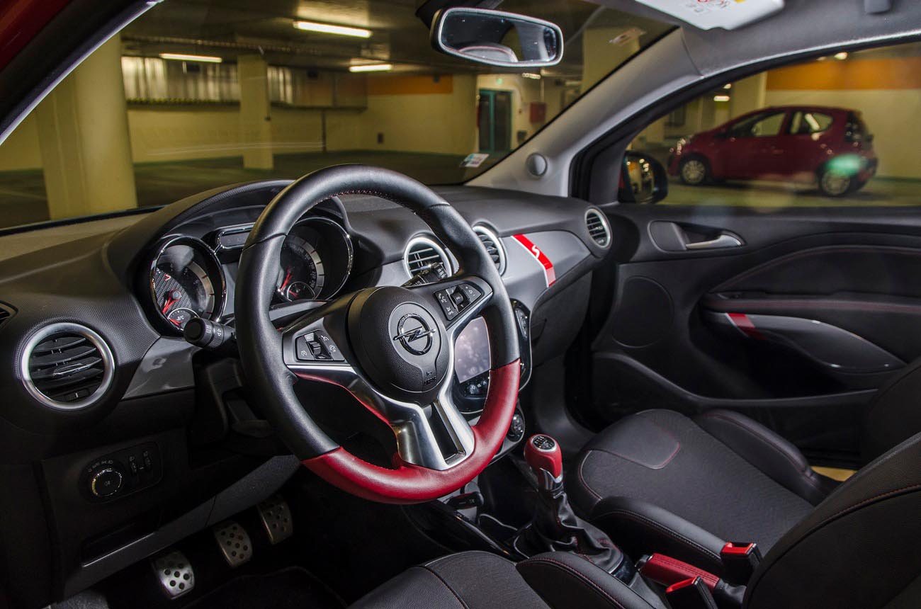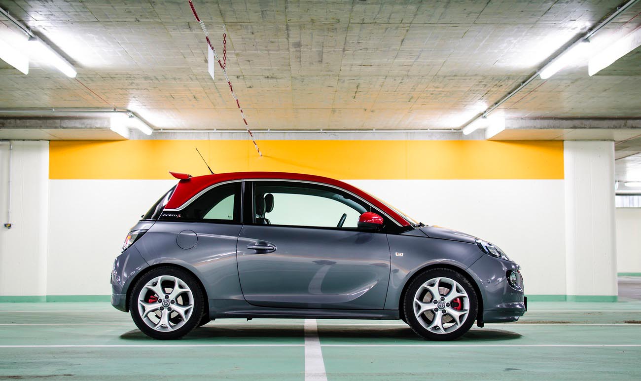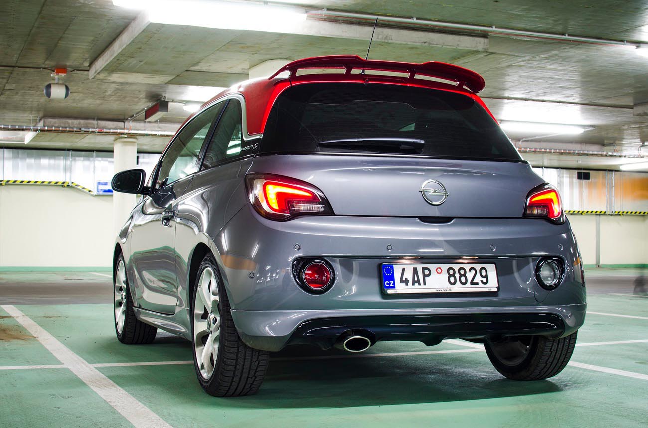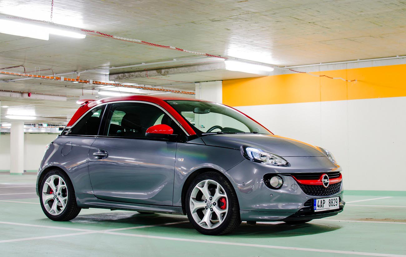 Je středa odpoledne a procházím přes parkoviště okolo naleštěných Opelů, kteří čekají, až se jich zhostí testuchtiví novináři. Mezi nimi stojí i tmavě modrý až fialový Adam, ze kterého trčí dvě olbřímí stříbrné koncovky výfuku. Proboha, snad mi nedají klíčky od tohohle! To bych ho raději neparkoval na dvoře a vůbec bych se tvářil, že s ním nemám nic společného! Uf, vzadu je ještě chromovaný nápis OPC, takže můžu být v klidu. Nebo ne? O pár aut dál už stojí onen Adam s velkým S. Je převážně šedivý, až na červenou střechu. Usedám do interiéru, který představuje mix mezi závodním autem z videoher a nákupní taškou pro blonďatou slečnu s čivavou a v hlavě mi začíná znít „mladý a dynamický, mladý a dynamický, mladý a dynamický!” Připadá mi, jako by mi bylo jednadvacet (A není? -VojtaD-), takhle mladě a dynamicky jsem se snad ještě nikdy necítil.