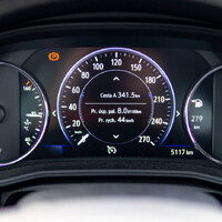 S interierem je to horší. Zejména první pohled do kapličky přístrojů odhalí sice chromované rámečky, ale také ručičky tak nějak bez designu a až skoro levně vypadající. Display radiomapy je matný, čehož nejsem vůbec fanda, ale je krásně jemný, rychle reaguje a… Po přesednutí z Caravelle mi přišel odvrácený od řidiče, ale to je jen tím, že je… No, že je normálně pro všechny. A display místo rychloměru tak nějak hezky funguje, dá se tam i něco přepínat a tak. Za srdce vás asi nechytne, ale je funkční a o to tu jde především. A šarmantně rozsvítí všechny falešné "žárovičky kontrolek" těsně před nastartováním, i když to nedává žádný smysl, a to se mi líbí.
