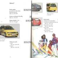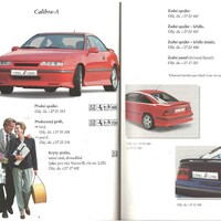 Estetiku této nevšední tiskoviny výborně shrnuje stránka výše, kde sadu originálních tuningových spoilerů k “efkové” Astře doplňuje fotka rodinky v typicky barevných šusťákovkách. Nesmí chybět samozřejmě ani obligátní podnikatelka v plandavých tesilkách a saku s rameními vycpávkami (na stránce s Calibrou níže).