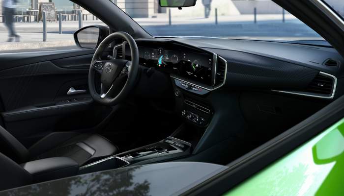 V interiéru je moderní velmi širokoúhlý displej, kterému se prý říká PurePanel a nastěhuje se postupně do všech Opelů, ale i pár tlačítek a točítek a kromobyčejně plochá středová konzola bez řadící páky.