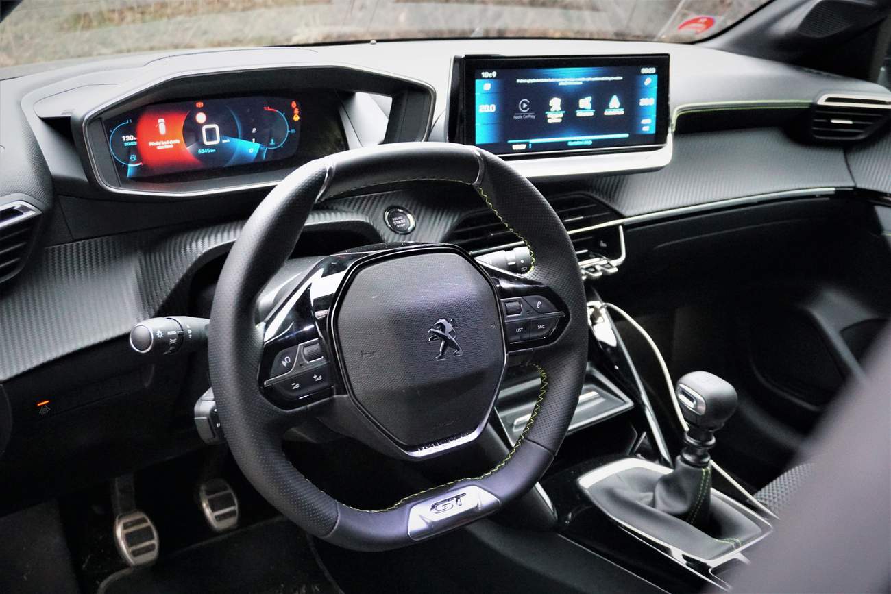 Naneštěstí se mé nadšení z exteriéru nepřeneslo také dovnitř. Peugeot již několik let praktikuje rozvržení interiéru zvané I-Cockpit (jistě víte, oč jde) a já si na to pořád nemohu zvyknout. Moje tělesná konstituce očividně není kompatibilní s tímto řešením. Trochu mi to přijde, jako snaha odlišit se za každou cenu. Peugeot sice argumentuje vyšší bezpečností, protože posunul budíky blíže k zornému poli, ale v době velmi kvalitních head-up displejů mi to přijde maličko zbytečné. Ještě ve větších a prostornějších autech se to zvládá lépe, ale v menším voze typu 208 mi to prostě nevyhovuje. Při každém nasedání do auta jsem zachytil pravým kolenem o volant, který bych navíc k ideální řidičské pozici potřeboval přitáhnout ještě o kousek blíž k tělu.