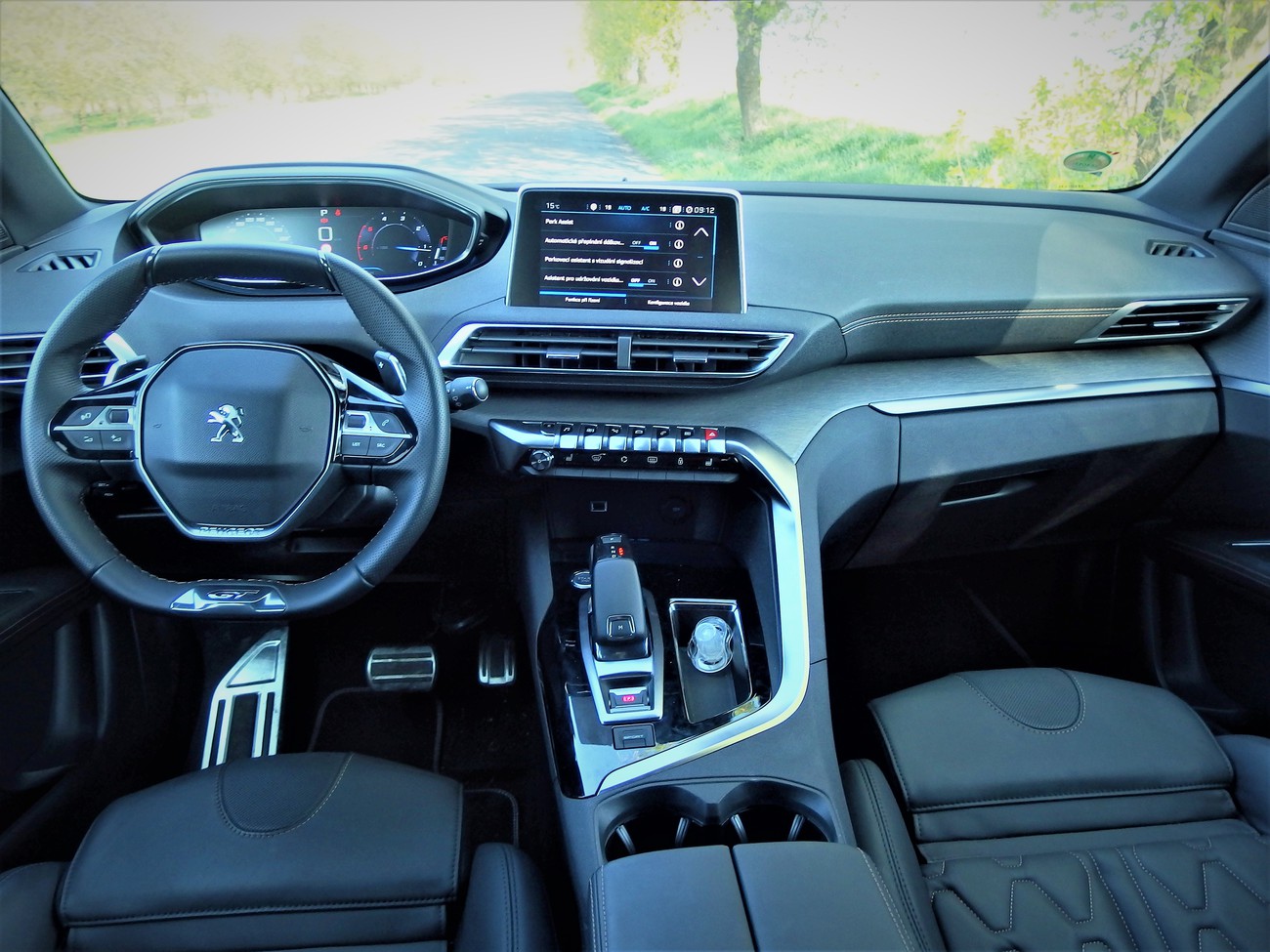 Za prvé, vážně je nutné obložit celý interiér lacině vyhlížejícím pseudodřevem? Hliník by podle mého vypadal určitě lépe, tím spíš u sportovněji pojaté varianty. Za druhé, středový tunel by mohl být užší. Člověk běžné velikosti se vejde bez problémů, ale jakmile má vaše oblečení velikostní štítek XL, pak se budete cítit trochu stísněně. Třetí stížnost věnuji sedačkám. Vypadají velmi zajímavě a extravagantně na pohled, že? Sedí se na nich přesně tak jak si myslíte. Zvláštní prošívání mě celou dobu tlačilo do zad a nemohl jsem si na to zvyknout. Aspoň že jsou dimenzovány i na velkého člověka a můžete si prodloužit sedák, což se na delší cestě opravdu hodí. Další věcí, která mě poněkud rozčilovala, byla parkovací kamera. Umí sice pohled z ptačí perspektivy a přiblíží vám detail když se blížíte k překážce, ale to rozlišení. Škoda, že Peugeot použil patrně nějakou web kameru z roku 2005, protože kvalitní displej, jaký je v interiéru by si zasloužil mnohem lepší kameru. Můžete mi také někdo vysvětlit proč se auto, které je vybaveno bezklíčovým přístupem, neumí samo zamknout když se od něj vzdálíte? Proč je nutné pokaždé ohmatávat kliku? Tyhle věci by si zasloužily při nejbližší příležitosti napravit.