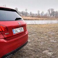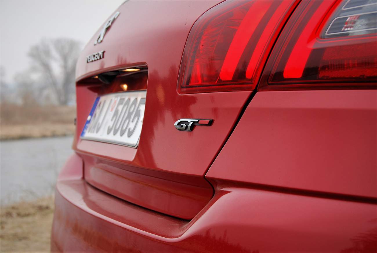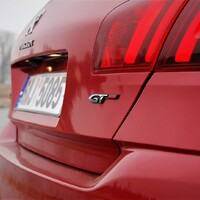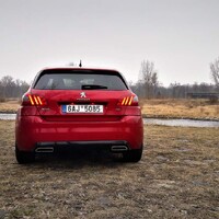 Co se jízdních vlastností týče, tady "třistaosma" navázala na již zmíněného předchůdce v podobě modelu 306. A to je dobře. Nečekejte samozřejmě rošťácky přetáčivé tendence jako u 306, ale s ohledem na dnešní dobu, je jen málo věci, které se dají 308 vytknout. Karoserie je příkladně tuhá, takže se nekroutí ani na velkých nerovnostech. Přestože verze GT je obdařena tužší podvozkem, není to na škodu. Pořád je příjemně pohodlný, a to i navzdory velkým kolům. Zároveň je dostatečně schopný na zakroucených okreskách, pokud tedy překonáte prvotní nejistotu. O čem to mluvím? Zadní náprava (jednodušší konstrukce) se totiž při ostřejším nájezdu do oblouku tak trochu zhoupne, lehce zavrtí na nerovnostech a teprve pak se naplno opře do uložení. Na poprvé to člověka sice trochu zneklidní, ale když si zvyknete, je to celkem zábava. Přidává to na pocitu hravosti. Není to špatné. Pochválit musím také řízení, nečekejte sice žádnou velkou zpětnou vazbu, ale jeho strmost jistě potěší. Trochu zklamání mi ovšem připravil motor. Tuhle přeplňovanou jednašestku znám poměrně dobře, protože mi dělala tři roky společnost v malém Citroenu DS3. Na 308 GT jsem se tak těšil především kvůli motoru. Pamatuji si jakou měl tento čtyřválec chuť do života. Vytáčel se radostně do omezovače, měl překvapivě dobrou reakci na plyn, hezký zvuk a dokázal být, když na to přišlo, překvapivě úsporný. Jenže tahle verze je nějaká jiná, zůstala jí snad je ta schopnost nízké spotřeby, protože není zase takový problém dostat se mimo město i pod 6 litrů. Ale jinak mě čekalo nemilé překvapení. THP v této konfiguraci je letargické, unylé a svých 205 koní velice dobře skrývá. Určitě by si zasloužilo trochu ostřejší naladění, tím spíš, když se honosí označením GT. Když si vzpomenu na vrcholné GTI, tak tam je motor úplným klenotem. Testované GT trochu ožije, když jej přepnete do režimu sport, pak se přiostří trochu reakce na plyn a auto zrychluje ochotněji. Režim sport však nebudete používat z jednoho důvodu. Tím je naprosto šílený zvuk. Když totiž zmáčknete ono kouzelné tlačítko, rozezní se z reproduktorů ( ty velké koncovky na zádi jsou pouhé atrapy) neuvěřitelně otravné bzučení, připomínající spíš včelí roj než sportovní vůz. Takhle tedy ne pánové.