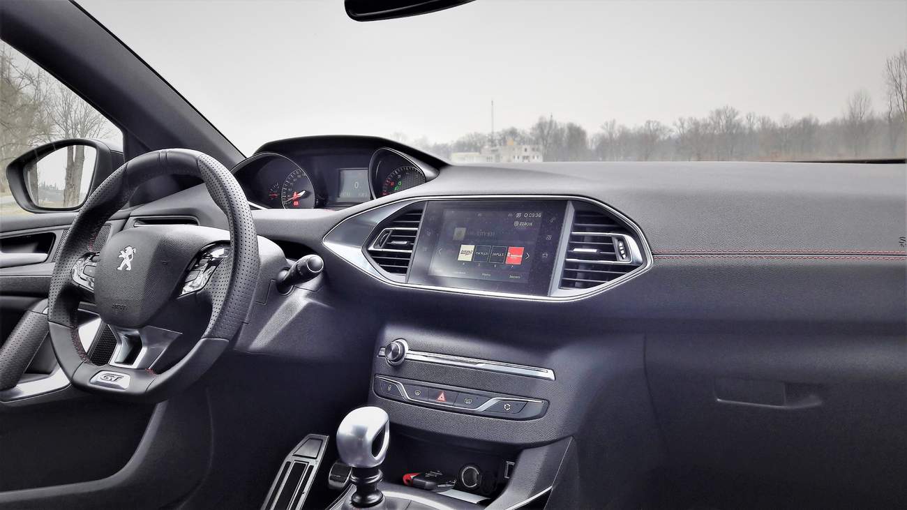 Nejkontroverznějším prvkem byl už od představení interiér. Peugeot si usmyslel, že v rámci optimalizace ergonomie bude fajn, když veškeré ovládací prvky ukryje pod jednu střechu, respektive pod jeden displej. Ale ono to nebylo fajn. V každé recenzi novináři upozorňovali, že to není nejrozumnější řešení. Stěžovali si uživatelé a zákazníci na diskuzních fórech, že by uvítali jiný způsob ovládání palubních systémů. Peugeot jejich nářky vyslyšel a trochu couvnul. V nových modelech jako 3008 či 5008 už přidal na středovou konzoli fyzická tlačítka a přepínače, pro rychlý přístup k požadované volbě. Trochu jsem doufal, že tahle změna přijde s modernizací i do menší 308. Bohužel se tomu tak nestalo. Patrně by bylo zbytečně nákladné předělávat větší část architektury vnitřku, takže tady máme původní řešení v celé své kráse. Opět se tedy můžete připravit na ovládání klimatizace přes dotykový displej, a vlastně cokoli bude chtít nastavit, musíte přes onen displej infotaimentu. Přestože Peugeot trochu zapracoval na uživatelském prostředí, zjednodušil jej a zrychlil odezvu, pořád to není optimální a fyzická tlačítka chybí. Těch zůstalo na středovém tunelu jen 6. Výstražné blikačky, výhřev zadního a ofuk předního okna, vnitřní cirkulace vzduchu, zámek a ovládání hlasitosti audia. A to není moc. Doufejme, že tedy aspoň příští generace, na které se již pilně pracuje, přinese v tomto ohledu zlepšení. Druhým kritizovaným prvkem interiéru byla pozice za volantem, respektive rozmístění volantu a budíků. Ty jsou vytažené ke spodnímu okraji čelního skla, kdežto volant motokárové velikosti, se nachází někde nad koleny řidiče. Tady asi záleží čistě na tělesné konstituci řidiče. Já mám nějakých 184 cm a nemám problém najít si rozumnou pozici za volantem. Stačí chvilka a sedí se mi pohodlně. Ale spousta lidí to štěstí nemá a vhodnou pozici si prostě nenajde. Je to o vyzkoušení.