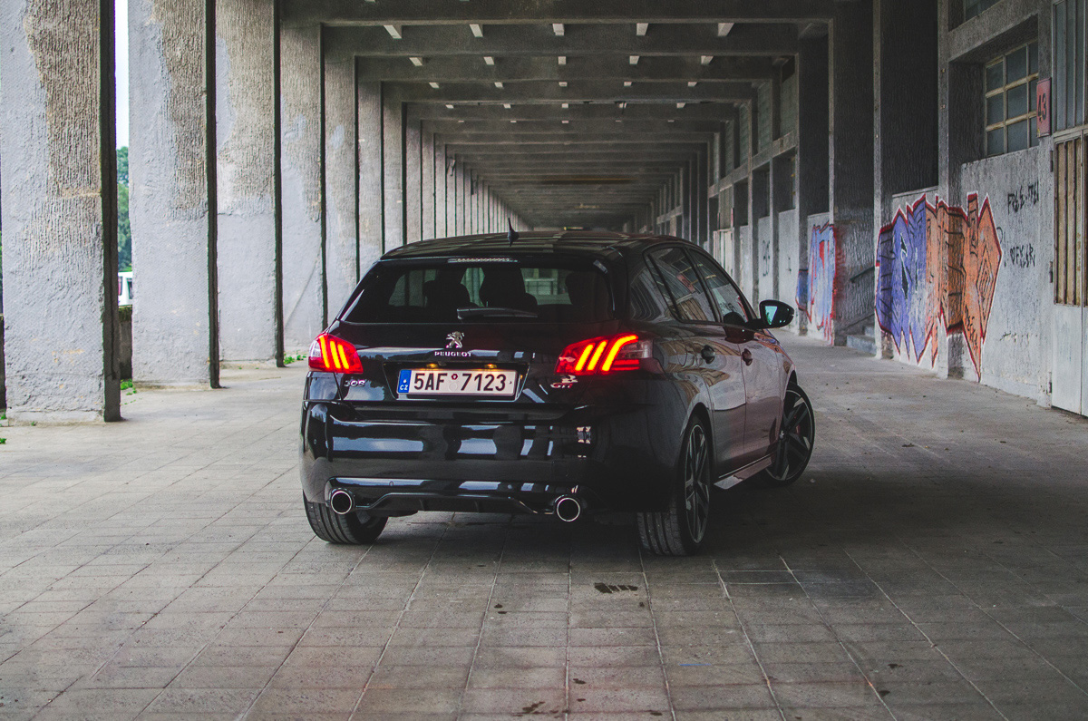 Navzdory tomu, že většina mechanickým komponentů 308 GTI má přímý původ v chuligánském RCZ-R, praktičtější karoserie s sebou přináší znatelný posun k přístupu druhému, to ale vůbec není na škodu. Jestliže RCZ-R byl rabiátem vždy a za všech okolností, 308 GTI nabízí dvě tváře, které spolu konstrastují jako červená a černá barva její karoserie.