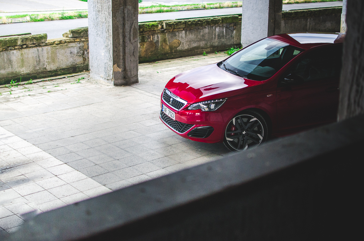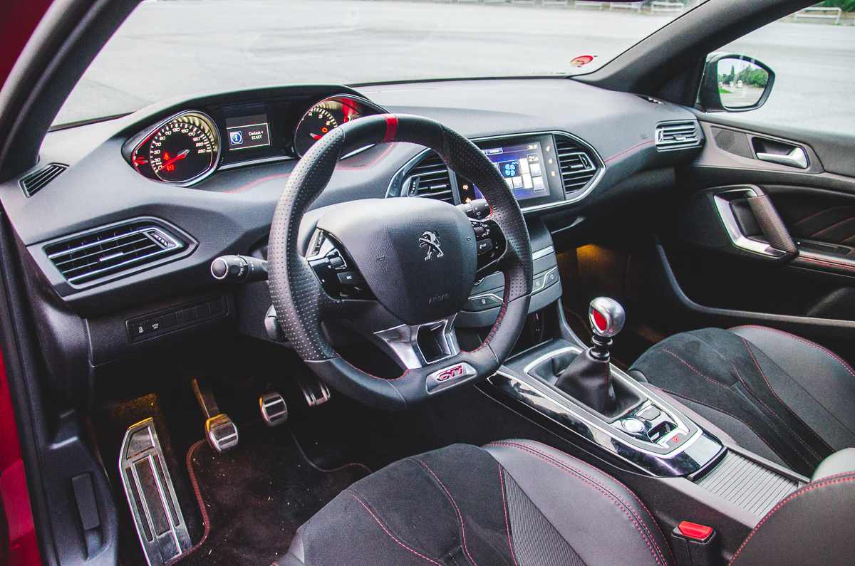 Když s autem zacházíte jemně, jako když jsem si GTI poprvé vyzvednul, motor působí až lenivě, veškeré ovládání je přívětivé a příjemnou atmosféru ukázněného daily driveru podtrhuje krásně provedený interiér s mírně luxusním nádechem. Je poměrně výstřední, ale jedná se o místo skoro nesportovně útulné, tento dojem ještě umocňuje mírně vyšší posez. Neustálou blízkou přítomnost pekla prozrazují pouze jasně červené akcenty vystupující z jinak černého celku. Jenomže peklo se zdá být velmi daleko, s branou bezpečně zamčenou, Peugeot je přece tak pohodlný.