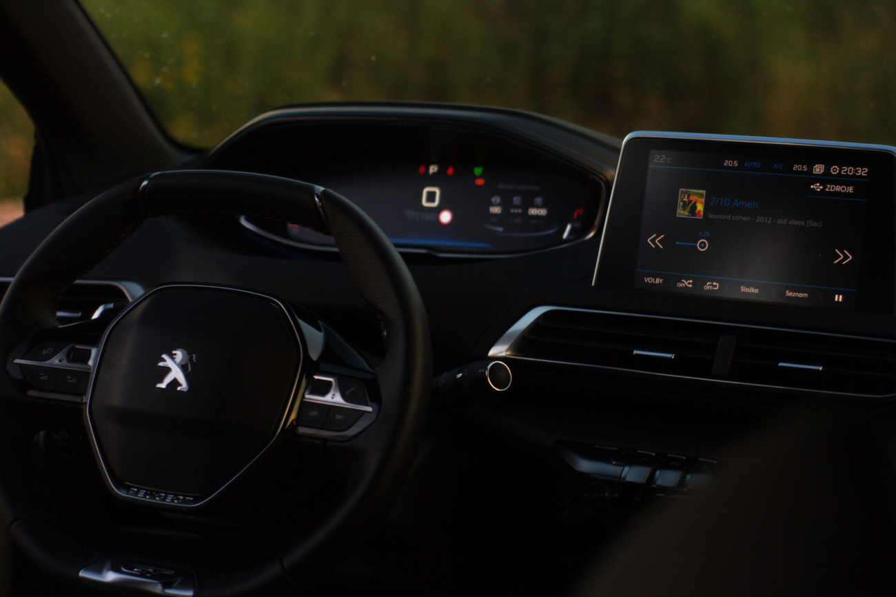 Uvnitř jako první zaujme současná chlouba Peugeotu, tedy digitální přístroje i-Cockpit. Právě díky němu získal menší sourozenec Peugeot 3008 titul evropského auta roku a já musím uznat, že na tom něco je. Tolikrát kritizovaný maličký volant zde konečně dostal svůj smysl. Asi díky tomu, že je zde více místa než v malých Peugeotech jako je 208 nebo 308, takže si i vzrostlejší řidiči mohou nastavit volant tak, aby přes něj viděli na digitální “budíky” a mohli tak naplno využít toho, že je displej umístěný vysoko a daleko, takže nemusíte tak výrazně “přeostřovat” mezi silnicí a ukazateli.