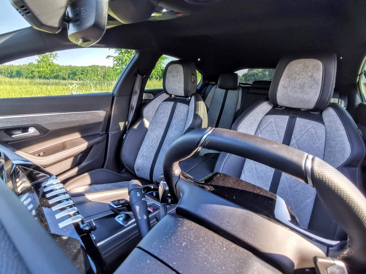 Dočkal jsem se ale přátelštějšího interiéru. Místo karbonového potisku došlo na tmavé dřevo a sedačky v kombinaci kůže a svetrově šedivé alcantry, navíc doplněné o masážní funkci. Ty si zaslouží jedničku s hvězdičkou, sedí se v nich parádně a i řidič vyššího vzrůstu má díky jejich nízkému ukotvení dost místa nad hlavou. Pomohla tu i absence prosklené střechy, která je sice efektní, ale v nízké 508 dělá ze zadních sedadel místa neobsaditelná osobami vyššími než 190 centimetrů.