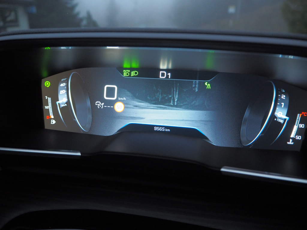 Po týdnu testování musím uznat, že to funguje. Přeostřování mezi obrazovkou a silnicí je neznatelné a zrak se nikdy zcela neodtrhne od toho, co se děje venku. Ani s nalezením ideální pozice za maličkým a nízko posazeným volantem jsem neměl problém, takže pokud mám mluvit za sebe, já patřím do tábora příznivců i-cockpitu. Peugeot nadto nechce nechat tuto výhodu zahálet, naopak, chce ji naplno využít. Proto si dal záležet a vytvořil digitální přístrojový štít s obrovským množstvím možností zobrazení. Můžete tu mít vážně cokoli, klasické ‘budíky’, mapu, údaje jízdních asistentů nebo třeba obraz kamery nočního vidění.
