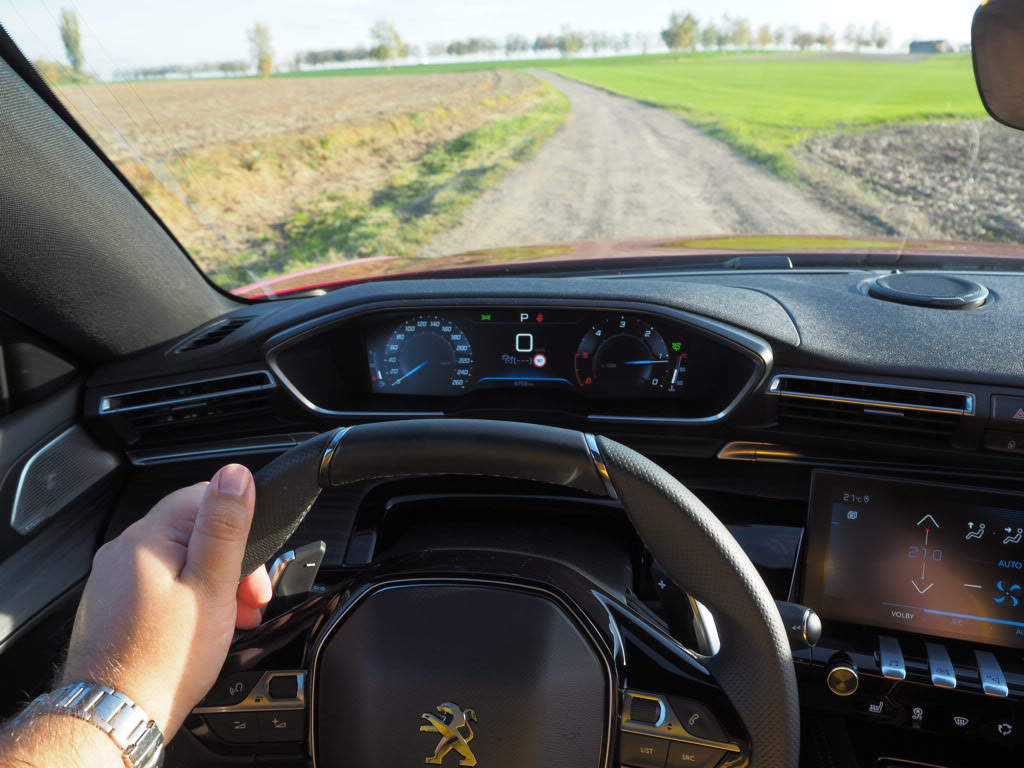 Takže se vrátíme zpět do základního nastavení Normal. Jiné nebudete potřebovat. Klidně si přepínač jízdních režimu přelepte některou samolepkou z naší kolekce, ať vás nesvádí. V základním nastavení je totiž Peugeot perfektní. Osmistupňová automatická převodovka hladce odřazuje, nechává motor líně převalovat a v okamžiku, kdy plynovým pedálem požádáte o celou porci sto osmdesáti koní, poveze vás na vlně točivého momentu, kde táhne neúnavně jako lokomotiva. Tohle se opravdu povedlo. Za celý týden se mi nepodařilo pohonné ústrojí nachytat nepřipravené. Pozoruhodné je, že této symbiózy bylo dosaženo mezi automatickou převodovkou a vznětovým motorem, což je stále pro mnoho výrobců velký problém.