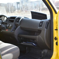 Po nastartování se ozve typický zvuk naftové dodávky, avšak na rozdíl od oblíbeného manažerského sedanu domácí značky, který zní lautr stejně, tady je akustický projev na svém místě. Pozice za volantem připomíná… eeeh… no, zkrátka místo, kam i královny chodí samy. Trochu v předklonu, abyste viděli pod sebe, najdete u loktů placatý volant. Ačkoliv na fotkách vypadá dost vertikálně, dojem z řízení je podobný, jako v některých modelech značky Karosa. A víte co? Vůbec to nevadí. Ba naopak! Tohle není žádný ‚užitkový osobák‘. Kdepak, tohle je velká dodávka, co zní jako velká dodávka, jezdí jako velká dodávka a vypadá… No, protě je to velká dodávka.