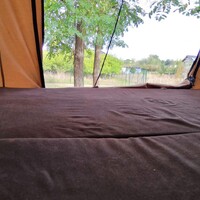 Do stanu se dle výrobce vejdou až čtyři osoby. Z vlastní zkušenosti mohu říci, že ve dvou je zde skutečně královský prostor, představa, že budu tento prostor sdílet s dalšími třemi osobami už působí trochu klaustrofobně. Podlahová plocha krytá měkkou matrací na míru totiž číní cca 200x200 cm. Velkou radost mi dělala výška stanu. Díky ní nepůsobí vnitřní prostor stísněně a dá se zde pobývat i během dne, hrát společenské hry a podobně. Stan tedy není pouze místem na přespání, ale příjemným příbytkem. Přísun denního světla pak zajistí dvojice trojúhelníkových oken. Za hezkého počasí je možné stan z obou stran otevřít a užívat si výhled. Právě lenošení na matraci v otevřeném stanu při západu slunce s chladným nápojem v ruce patří mezi nejpříjemnější momenty, které jsem za týden s Rifterem zažil.