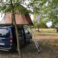 Nabízí se samozřejmě otázka zatížení střechy vozu. V uživatelských příručkách zpravidla najdeme údaj o nosnosti střechy v rozmezí 50-100kg. Tato hodnota ale referuje o dynamickém zatížení, čili o tom, kolik unese střecha za jízdy. Počítá tak i s aerodynamickým odporem převáženého nákladu ve vysokých rychlostech. Statické zatížení je tak většinou několikanásobně vyšší. Není to ale pravidlem a proto je vhodné si tuto hodnotu vždy ověřit u výrobce vozu. Rychlým orientačním výpočtem jsem zjistil, že při plném obsazení stanu (4 dospělé osoby) působí na střechu vozu zatížení zhruba 230kg (část zátěže nese žebřík). Rifter s tím neměl žádný problém, u některých menších, nebo starších vozů už bych se ale takové hmotnosti trochu bál.