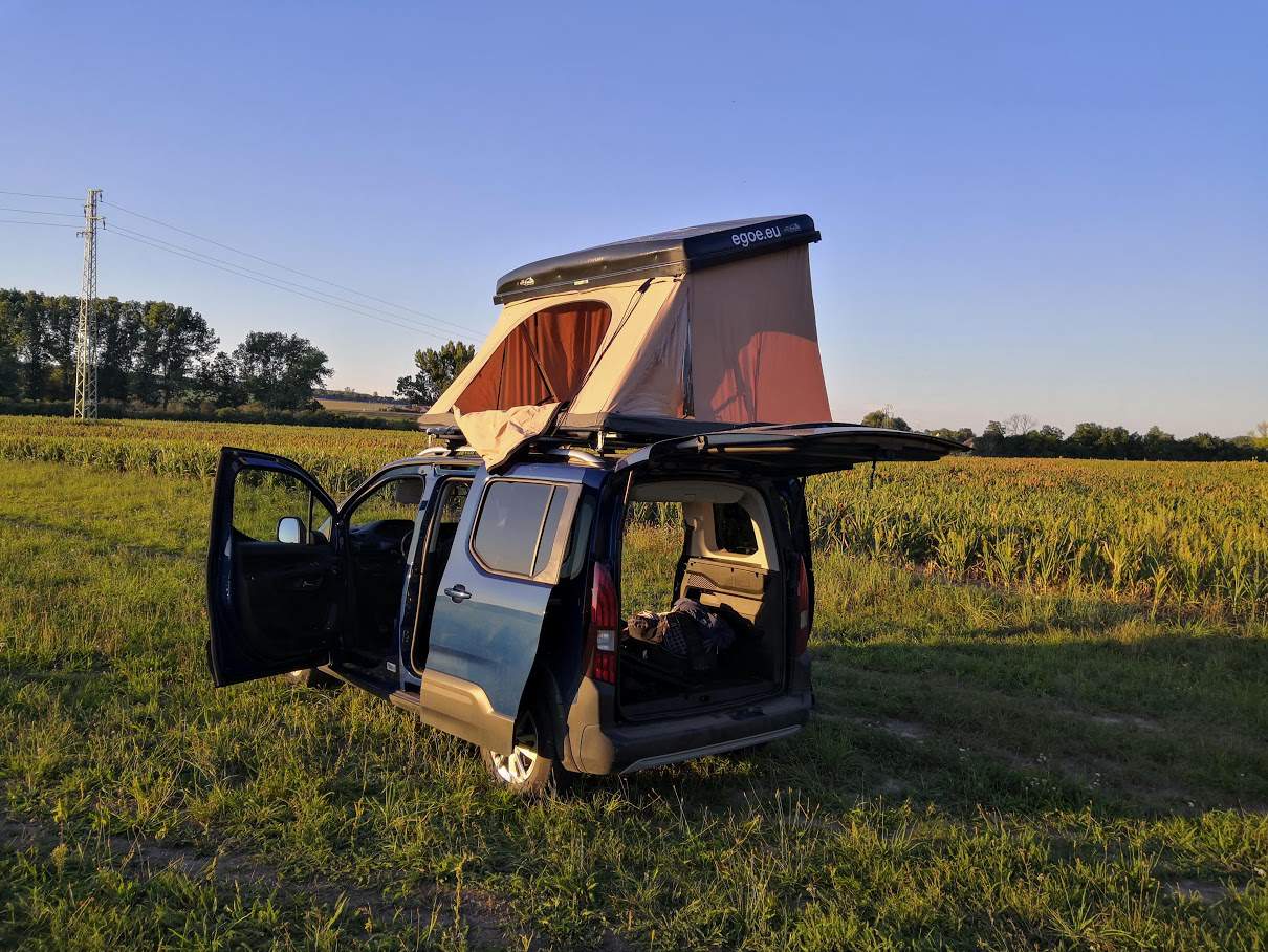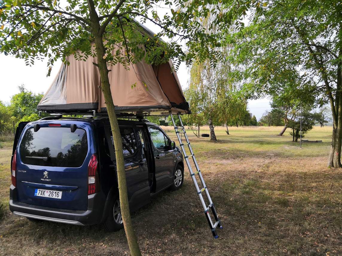 Jak jsem již zmiňoval, modrý Peugeot tížil celý testovací týden velký střešní box. V něm se nacházel, jak je patrné i z obrázků, rozkládací střešní stan Hussarde Quattro. Ten v České republice nabízí firma Egoe za 87.120 Kč vč. DPH. To není zrovna málo peněz, pojďme se proto detailně podívat, zda za takovou cenu tato vychytávka stojí.