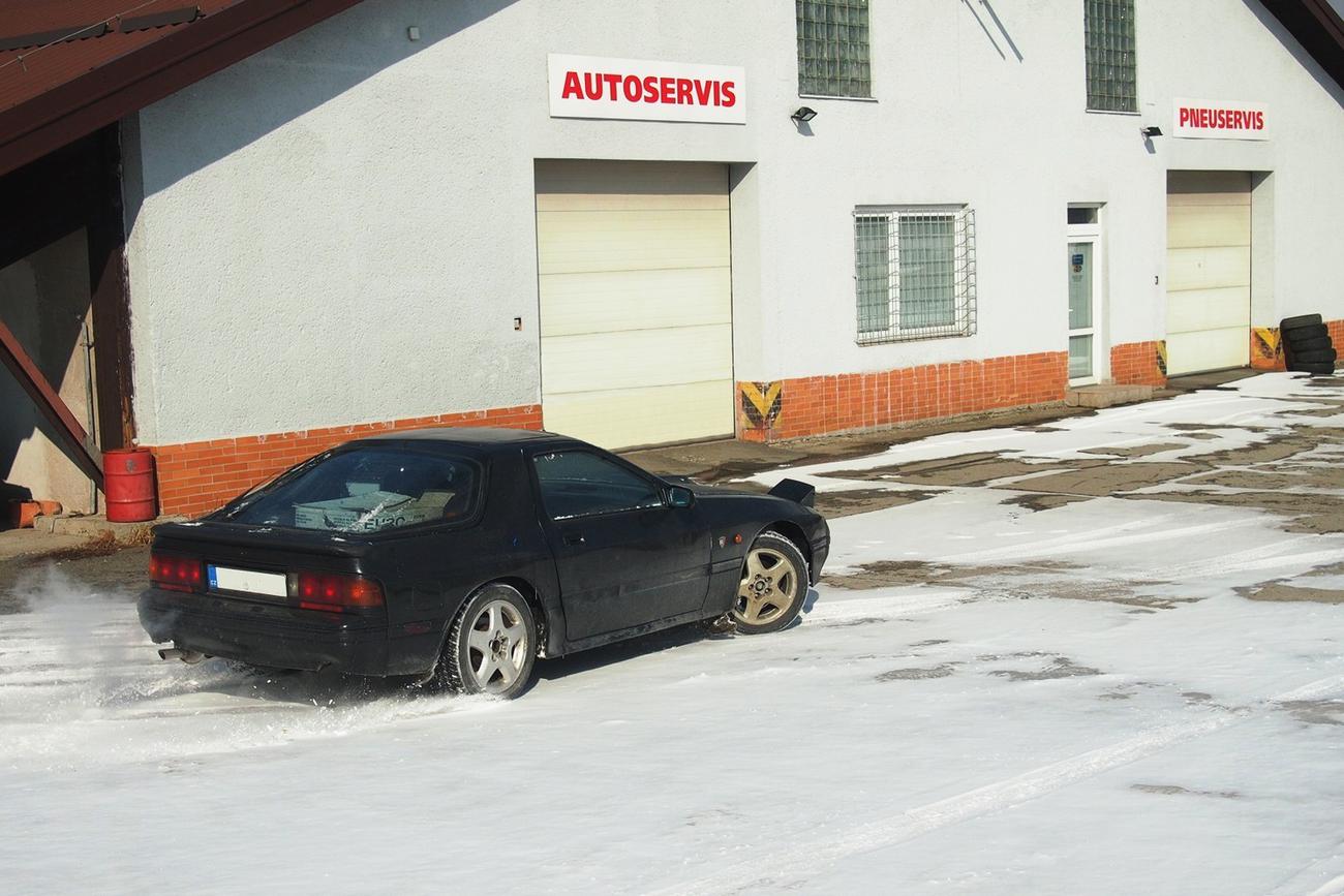 A tak v pozdním podzimu loňského roku začal v řadové garáži za nedostatku výbavy, prostoru, času, tepla a světla vznikat tento skvost. Plán byl jasný, nejprve zkusit jestli motor má vůbec tendenci startovat – stačí spojit správné drátky a namísto benzínu použít kontaktol nastříkaný do sání a první zážeh byl na světě. Následovalo zapozicování motoru do motorového prostoru, přehození olejové vany za vanu z E36, tvorba držáků motoru a převodovky a pak asi největší investice celého projektu – za téměř trojnásobek ceny celého motoru a převodovky si nechat vyrobit kardan na míru – z kardanu z E30 a z RX-7 udělat jeden o správné délce. A pak už zbývaly jen všechny ty „drobnosti“, které ale ve výsledku byly časově daleko nejnáročnější – udělat držák chladiče, airboxu, baterky, zapojit plyn, brzdový posilovač, topení, rozchodit elektriku, posvařovat nějaký výfuk a taky zprovoznit spojkovou hydrauliku. Konkrétně z tohohle kroku jsme měli velké obavy, ale praxe byla nakonec mnohem jednodušší. Kdo by to byl řekl, že původní RX-7 hlavní spojkový válec bude dodávat právě potřebné množství kapaliny do pomocného spojkového válce z E30. A tak prakticky stačilo jen spojit okruh a pořádně odvzdušnit a voilà, spojka spojkuje.