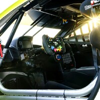 Převodovka je samozřejmě sekvenční, ovládaná pádly pod volantem. Komponenty tlumení pochází od Öhlins, brzdy dodal Alcon a kola se středovou maticí obouvají pneumatiky Michelin. Uvnitř vozu se kromě bezpečnostního rámu, skořepiny řidiče a pár karbonových dílů, nachází jen to nejnutnější vybavení.