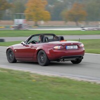 A až tady pak se ukazuje, že můj malinký sporťáček, který je tak skvělý na okreskách, tu naráží na své limity. Podvozek je najednou až moc měkký, pneumatiky nedrží tak, jak bych si představoval, a auto se i s nataženou střechou kroutí. Největší problémy byly ale dva – první je, že sedačky postrádají pořádné boční vedení, a nakonec trávím jízdu tak, že řídím jen levou rukou a pravou ze všech sil objímám středový tunel, abych zůstal alespoň přibližně na místě řidiče. Druhým se pak ukázaly hlavně brzdy (nebo brzdová kapalina?) – v tomto momentu asi nejdůležitější část auta. Stačí čtyři ostrá kola a najedou jsem nedobrzdil v zadní části okruhu nahoře na kopci. Naštěstí je tam vyasfaltovaná úniková cesta rovně, kterou jsou na poslední chvíli využil. Tohle je ten okamžik, kdy jsem zjistil, jak se na okruhu správně jezdí, a máme tu radu šestou – nečekej jako já, že si budeš pěkně půl dne (nebo déle) kroužit na dráze. Správná taktika je vjet na trať, začít zlehka a postupně přidávat. Až se dostaneš do správného naladění, dej naplno třeba tři kola nebo kolik tvoje brzdy vydrží. To budou ta kola, kde tě budou zajímat časy. Pohlídej si, abys při nájezdu do těchto kol neměl nikoho pomalého před sebou, abys pak nebyl naštvaný, že ho musíš předjíždět a vyjedeš z ideální stopy. Zároveň bys neměl mít nikoho rychlého blízko za sebou, ať naopak nemusíš uhýbat ty. Po rychlých kolech chladit ideálně s blinkrem doprava a sledováním provozu za sebou, ať to někomu nezkazíš, a pak šup z trati ven a dát autu pauzu. Po lehkém vychladnutí můžeš zas vyrazit a užívat si další a další dávky adrenalinu, a to je asi všechno. Takhle můžeš kroužit celý den a auto by to mělo přežít, abys ses s ním zas dostal i domů.