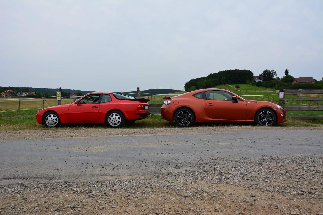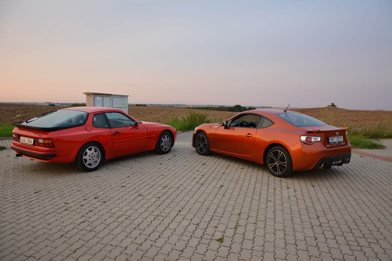 Jirku, majitele této krásné červené 944, jsem poznal jako zájemce o koupi mého modrého Triumphu GT6. Na návštěvu tehdy dorazil ve své nově dovezené 944. Má tedy jednoho veterána, se kterým může kdykoli a kamkoli, a má Triumpha, který má občas svou hlavu a je daleko větší výzvou k řízení. Je to velmi dobrý výběr. Na začátečníka v našem šílenství okolo starých sportovních aut rozhodně obdivuhodný. A protože jsem měl v té době také pěkné Porsche, bylo jasné, že je musíme projet. Jirka se tvářil, jako by snad mezi fanoušky značky nemohl zapadnout. Stále tvrdil cosi ve stylu: „Když ty máš tu 911 a já jen 944…“ Houby, 944 je skvělá a nakonec jsme ji projížděli společně s novou Toyotou GT86. Dostávám klíčky od Porsche a rozjíždím se směrem ke svým oblíbeným okreskám v okolí, zatímco Jirka hledá startovací tlačítko v Toyotě.
