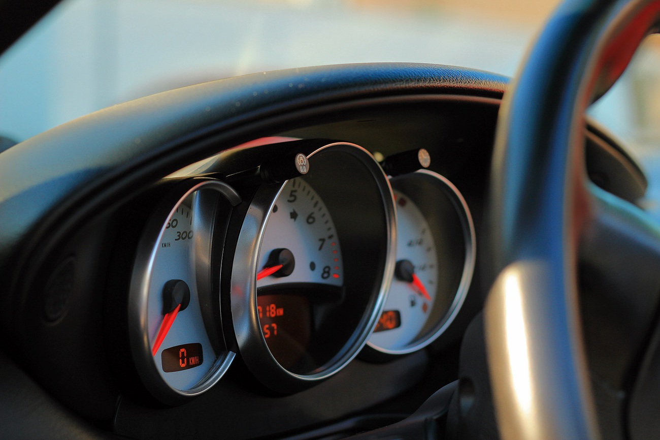 Po vypůjčení jsem celou cestu z Brna po dálnici záměrně absolvoval na půl plynu a v rozumném tempu. Jednak to šetřilo palivo, druhak jsem chtěl krakena vypustit až při té správné příležitosti. Vyplatilo se… Sjezd z dálnice, obec, střecha dolů, před cedulí konec obce podřadit na dvojku… “WŇŇŇŇŇAAAAAAAAAAAAAAAAAAAAUUUUUUUUUU“ !!! Mít sání kousek za ušima je něco úžasného. Tohle není zvuk nějaké malorážky podpořený barevným kuželem na sání, ani laciné divadlo výfukového trubkoví. Tohle je neuvěřitelně sytý a intenzivní KRAVÁL aplikovaný z bezprostřední blízkosti! Za přepážkou má být plochý šestiválec 3.2 l s 250 koni, ale já mám spíš dojem, že tam kňučí nějaké ústřední monstrum z béčkového hororu, které má ve scénáři za úkol eliminovat všechny vedlejší postavy filmu! Uff! Zvuk motoru je jednoznačně jedna z nejlepších věcí na autě. Přitom akcelerace a průběh výkonu jsou spíše aristokraticky nenucené. Boxster zrychluje očekávatelně k síle 250 koní a váze 1300kg (na stovce je za 5,9s), ale moc to nedává najevo. Žádné kopance nebo tlačení do sedadel, jen velmi pěkná akcelerace, takže když řadím čtyřku a na tachometru je 170, trochu se lekám. Ano, i Boxster S 986 má typickou poršáckou převodovku s enormně dlouhými kvalty, která společně s titěrnou stupnicí rychloměru subjektivně utlumuje vnímanou rychlost. Zatímco třeba nové Volkswageny mají mezi číslicemi 0 a 150 celou půlku rychloměru a periferně vnímaná ručička skrz něj pádí jako kdyby snědla kari a zapila jej mlíkem, u Boxsteru nedosahuje výseč snad ani pravého úhlu a nepatrného posunu ukazatele si skoro nejde všimnout. Tím však rozhodně nechci říct, že by auto trpělo nedostatkem výkonu. Koníků je velmi příjemné množství.