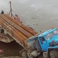 Jenže potom jsou tu bizarní a dlouhotrvající nehody, jako třeba tato. Kdesi v Rusku, patrně zcela mimo civilizaci, jali se zdejší všeumělové nacouvávat s náklaďákem plným orezlých trubek na loď. Jak je vidět na začátku videa, situace byla opravdu hodně neideální. K přistavené lodi vede bahnitý svah, trubky jsou těžké a vůbec je to dost naprd den.