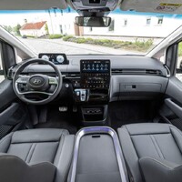 Platformu si Staria vypůjčila z modelu Santa Fe. Z toho plyne několik věcí. Za prvé, kvůli použitému základu bude patrně užitečné zatížení o něco nižší, než jsme zvyklí u klasických dodávek. Za druhé, budou k dispozici všichni jízdní asistenti, na které jsme zvyklí z běžných modelů značky a za třetí, a to je asi nejdůležitější, Staria jezdí víceméně jako osobák. Je krásně pohodlná, jízdní vlastnosti jsou nezaludné a ani k tomu nemusíte mít zatížený vůz. Takhle hezky funguje i zcela prázdná. Víc budeme samozřejmě vědět až po klasickém testu, ale na první dobrou zanechal tento největší Hyundai velmi pozitivní dojem. K dispozici bude pro začátek jeden jediný motor. Je jím stará dobrá naftová klasika. Čtyřválcová dvadvojka o výkonu 130 kW a točivém momentu 430 Nm. Žádná elektrifikace, žádně baterky ani kabely, to zde v tuto chvíli nenajdete. Volit můžete mezi šestistupňovým manuálem a osmistupňovým automatem. Vybírat můžete mezi předokolkou a čtyřkolkou. Dynamicky se nejedná o žádného velkého rychlíka, ale to asi ani nelze očekávat. Jízdní výkony jsou však zcela dostačující.