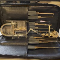Další den jsem si vyzvedl sadu planžet, tahátek, mačkátek, háčků a podobných nástrojů mladého zloděje spolu s průhledným zámkem. Plán byl, že se přeci jedná o jednoduchou starou FABku, navíc určitě vychechlanou, takže jsem si hezky sedl s pivkem s tím, že se to na tom průhledném zámku naučím. Vybral jsem si šperháček a za půl minuty to bylo otevřené.