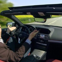 Postřehy: do auta fouká méně než jsem čekal! Krom jízdy po dálnici jsme celou dobu absolvovali i se staženými okny, nebo jen napůl - to vnímání prostředí je tak intenzivnější. Vůně/pachy z okolí pronikají dovnitř taky méně než jsem čekal - ponejvíc jsem cítil aroma z kožených sedaček. Jeli jsme se topless i v dešti a z nebe na nás ani kapka!!! Když se spustila už fakt průtrž, musela plátěná střecha nahoru. Pak ovšem dramaticky vzrostl v kabině hluk a bylo dost nepříjemné dusno. Hrozně se mi líbí stahování , kdy z hodně temného doupěte se rázem stane nekonečný prostor plný vjemů. Nejnižší teplota byla 12° a díky topení a vyhřívaným sedačká to bylo jen a jen příjemné. Ovšem bylo i ostré slunce a vzduch 28° a to už teda bylo tak na hraně. Za jízdy ten furtvětřík funguje, ale v obci při 50km/h a pomaleji už míň no. Řešil jsem to bílým ručníkem po arabsku na hlavu :-) Ani vlastně teď nevím, jestli byla v autě klimoška. Za jízdy se místo střechy udělá taková vzduchová kapsa, takže pokud ji topení dovede vyhřát, pak by i klíma měla vnitřek ochladit. Ale jak říkám, tohle jsem nezkoušel.