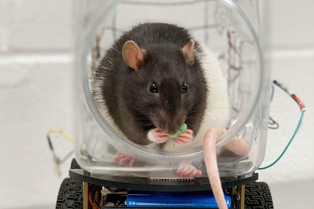 Zhruba před rokem vědci z univerzity v Richmondu naučili krysy řídit. Vyrobili jim malá autíčka z průhledných krabiček, které opatřili hliníkovým dnem a třemi měděnými drátky. Když si krysa stoupla na hliník a pracičkou se dotkla drátku, uzavřel se elektrický obvod a celé ROV (Rodent Operated Vehicle) se dalo do pohybu. Pohybovat se přitom mohlo různými směry v závislosti na tom, kterého ze tří drátků se krysa dotkla. Když se krysa pustí, autíčko se zastaví. Jednoduché. Žádné zvíře by se samozřejmě nezačalo dobrovolně oddávat motorismu, kdyby nemělo perspektivu chutné odměny. Pro trénink řidičských schopností vědcům posloužila cereální kolečka Froot Loops.