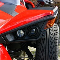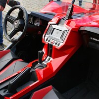 Výkon 173 koní, který motor podává, se sice nemusí zdát jako zázračně vysoký, ovšem uvažte hmotnost necelých 770 kilogramů a je jasné, že Slingshot spíš než pomalu jezdí vskutku dost rychle. Od necelých čtyř tisíc za minutu motor nabere síly a vystřelí podivného Transformera rázně vpřed, což je mnohdy ještě na třetí kvalt doprovázeno protáčením zadní gumy na asfaltu. Zatímco na předních kolech je gripu víc než dost, zadek s jedinou pneumatikou to tak jednoduché nemá a pouhým přišlápnutím plynu se rád začne klouzat. Celému vozu tento zvláštní nepoměr přilnavosti propůjčuje dosti živou charakteristiku a nemusíte se ani příliš snažit, aby se na každém výjezdu ze zatáčky dostavil efektní akcelerační drift.