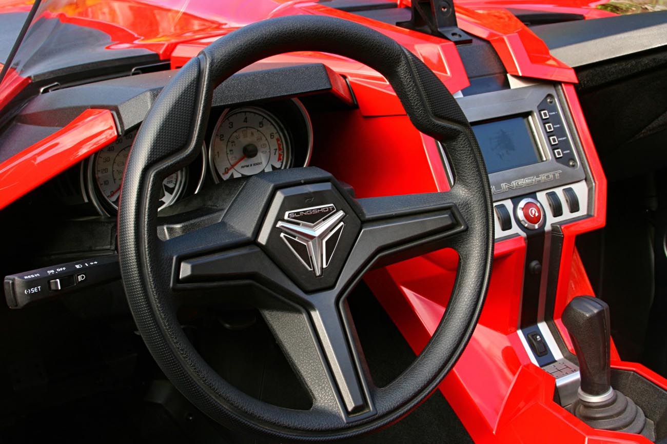 Už pár let zpátky se nám Polaris, tedy výrobce neortodoxních motorových vozidel, rozhodl ukázat, že tříkolky mají co říct i trhu sportovních vozidel. Vznikl tedy trochu prazvláštní stroj, nesoucí název Slingshot. Ti v anglickém jazyce vzdělanější již v tuto chvíli vědí, že se do češtiny tento termín překládá jako „prak“. A přesně jako prak vůz i vypadá. Přední dvě kola ční jako vrcholy dřeva ve tvaru písmena ypsilon, to zadní je potom jako dvanáctka matka v kousku kůže, natažená na gumách k výstřelu a následnému vysklení sousedovic okna.