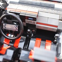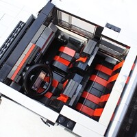 První Golf sám o sobě disponuje hromadou hranatých tvarů, takže jeho přestavba na Lego auto dopadla nadmíru dobře. Exteriér dostal klasickou masku s kulatými světly a rudou GTI linií, přítomna jsou stylová kola a vytažené lemy blatníků nad nimi. Snad jen ten C sloupek mohl být o kousek tenčí. Takhle auto z boku působí poněkud bachratým dojmem, což se o předloze říci nedá.