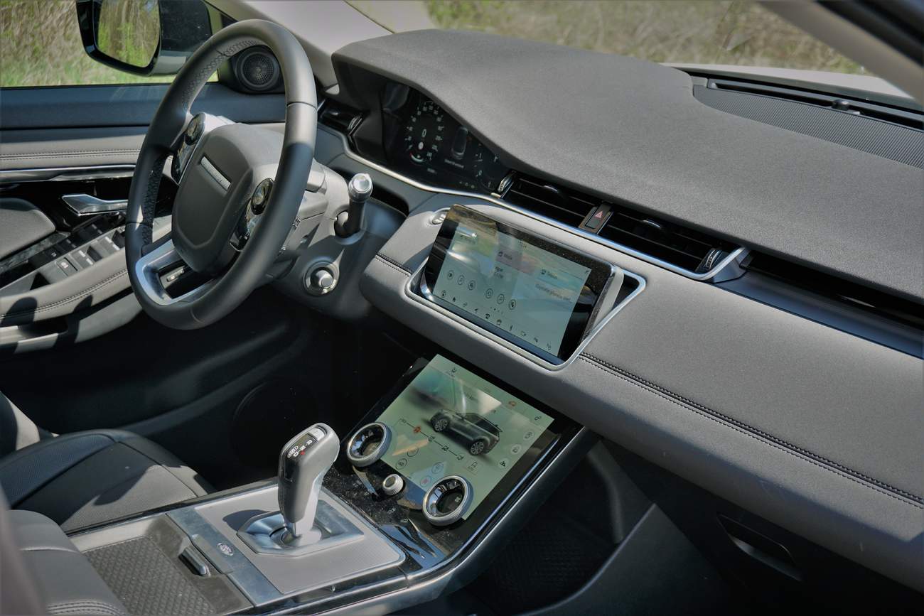Místem, které si už zasloužilo nějaké větší vylepšení byl interiér. Ten přece jen po osmi letech začal trochu zastarávat. V Range Roveru si toho byli vědomi, a proto novinka přichází se znatelně vylepšeným vnitřkem. Kam oko dohlédne, tam najde lepší materiály, čudlíky, a hlavně spoustu displejů. Pokud vám dotykové displeje nesedí, asi nebudete z nového Evoque nadšení. Kompletní ovládání audia, klimatizace a jízdních asistentů se nastěhovalo do dotykových displejů. Ano, množné číslo je tu na místě, protože Evoque přebral po vzoru větších sourozenců také sekundární obrazovku po hlavním displejem. A aby toho nebylo málo, také ovladače na volantu jsou tvořené dotykovými ploškami. Jestli je to dobře, nebo špatně, to už je na chuti každého uživatele. Za sebe mohu říct, že s tím problém nemám a docela se mi to líbí.