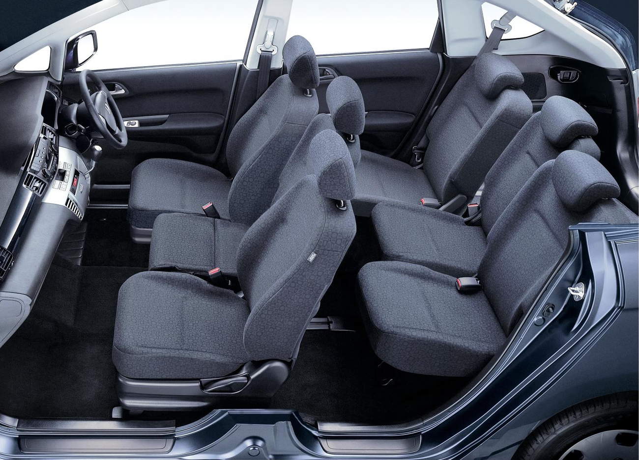 Druhým zástupcem z řad MPV, který dostal dopředu tři plnohodnotná sedadla, je Honda FR-V. Pod touto zkratkou se, jen tak mimochodem, skrývá označení Flexible Recreational Vehicle. Interiér je tu koncipovaný hodně podobně jako v Multiple, šestice samostatných sedadel se dá posouvat po ploché podlaze, případně samozřejmě i samostatně vyndávat, čímž vznikne dost místa pro nářadí.