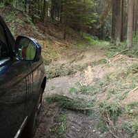 První opuštění asfaltového koberce s sebou nese menší dávku nervozity. Hupnu do příkopu a zůstanu v něm ostudně trčet. Poškrábu si honosný lak Loire Blue Metallic. Taky tu máme určitá pravidla, přece jen to pole někomu patří a ten někdo by nemusel mít radost z dvouapůltunového mastodonta devastujícího jeho zenovou zahrádku. Ale to se poddá. Svoboda pohybu je naopak silně návyková. Proč bych se trmácela dvacet kilometrů objížďkou, když to můžu střihnout po louce a ještě si přitom užít trochu zábavy? Překvapilo mě, že zdolávání nerovností, hor a dolů má podobný účinek jako dobře trefená zatáčka, elegantní řízený smyk nebo přetížení 1G. Je to čirá radost.