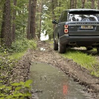 Poslední úsek bereme zkratkou přes les. Lokální lesáci jsou ukáznění a pozůstatky monstrózní těžby po sobě uklízejí, lesní cesty jsou tedy dobře sjízdné, nikoli plné větví a pařezů jako jinde. Zůstávají jen hluboké vyjeté koleje od traktorů a harvesterů, toho času plné vody a bahna. Range má pro tyto případy speciální terénní režim, trefně pojmenovaný “bahno a vyjeté koleje”. Stačí zmáčknout tlačítko, a auto i zde praktikuje svou politiku ignorace okolí, jako by se nechumelilo. Dění tam venku můžete sledovat na obrázcích z kamer, je to milé zpestření. Kdepak, přátelé, dneska žádné traktory, žádné dobrodružství, jen pohoda, komfort a zen.