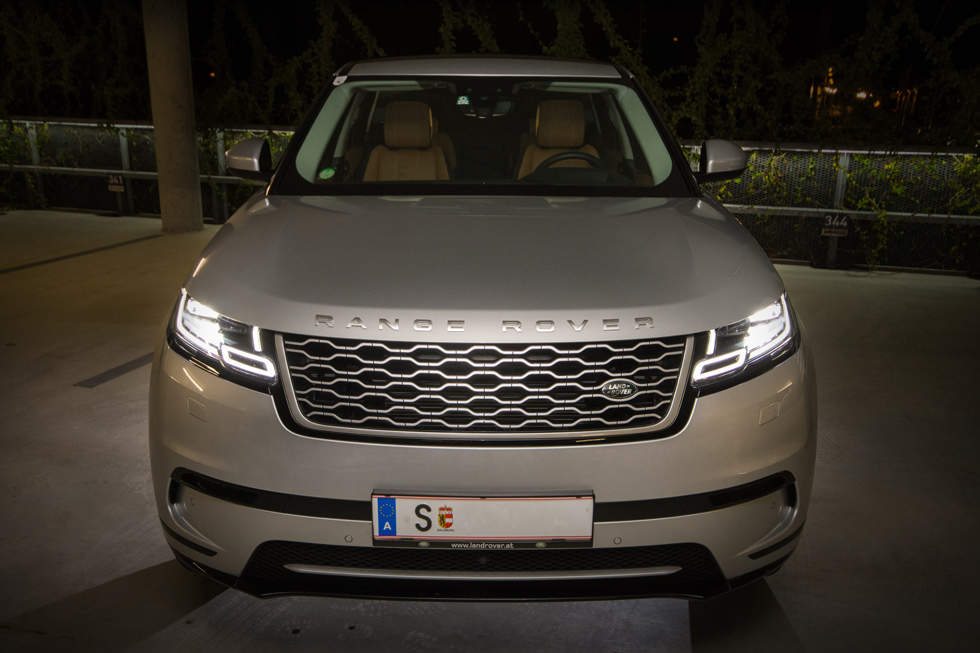 Už při prvním odhalení modelu Velar jsem věděl, že tento vůz musím řídit. Jeho dokonalý profil mě dostal do kolen, hezkou myšlenkou je pak vizuální propojení se zbytkem řady Range Rover. Jen pro zajímavost, pod označením Velar se skrývaly první prototypy Range Roveru koncem šedesátých let. Naživo Velar působí velkým dojmem pouze tehdy, jedná-li se o vaše první setkání s SUV. Ve své podstatě není nijak vysoký, zvláště pokud je vzduchový podvozek nastaven v nejnižší poloze pro snadný nástup. Ostatní rozměry umně skrývá moderní design doplněný o atraktivní detaily, například výsuvné kliky dveří. Celý vůz působí velmi čistě a uhlazeně, nijak neruší ani obrovská maska chladiče. Jistou daní za vzhled jsou kola, testovaný kus jezdil na jedenadvacítkách, přičemž vrcholné modely mají ráfky ještě o palec větší. Velar na ulici zkrátka působí, jako byste ukradli koncept z automobilové výstavy. Mimochodem jde o první auto, u nějž mi nevadí stříbrný lak, dokonce jsem ochotný říct, že mu odstín Indus Silver velmi sluší.