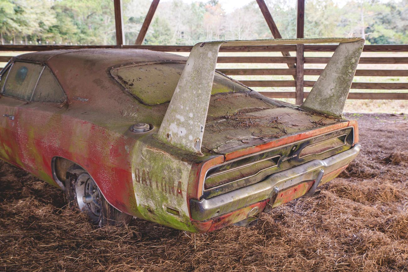 Daytonu objevil chlapík jménem Charlie Lyons, majitel dílny, zabývající se renovacemi starých Chryslerů. Vůz sice za dlouhá desetiletí do určité míry pozřela příroda, a bude dlouho trvat, než se jeho mechem porostlé křídlo bude zase blýskat, i tak se ale jedná o neskutečně cenný kus. Charger se totiž nachází u svého teprve druhého majitele, který má na svědomí i značně kýčovité plameny na předních blatnících – jediný to neoriginální prvek celého auta. Tuto úpravu lze přičíst mladistvé nerozvážnosti. Když jej v roce 1974 kupoval od městského soudce, bylo mu teprve osmnáct let. Všechny ostatní věci včetně laku jsou ale jinak zcela originální a nedotčené jsou i kilometry. Osmiválec 440 Magnum pod kapotou má na krku směšných 20 553 mil.